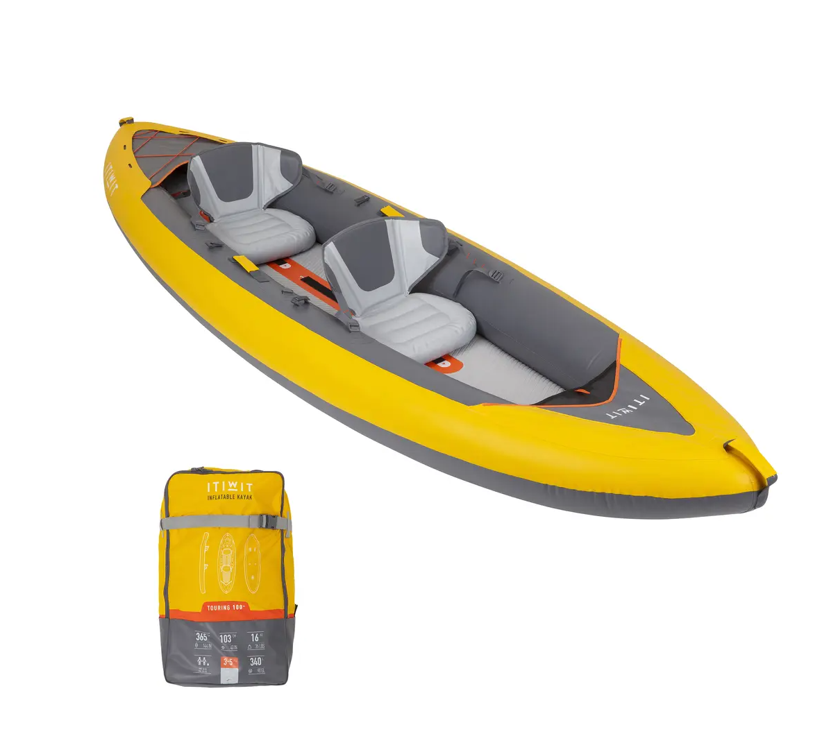 充气式皮划艇(2个座位)含2副桨、1个打气筒
